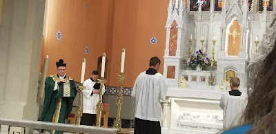 GOSPEL (Luke XVII. 11-19.) At that time, As Jesus was going to Jerusalem, he passed through the midst of Samaria and Galilee: and as he entered into a certain town, there met him ten men that were lepers, who stood afar off, and lifted up their voice, saying: Jesus, master, have mercy on us. Whom, when, he saw, he said: Go, show yourselves to the priests. And it came to pass, that as they went, they were made clean. And one of them, when he saw that he was made clean, went back, with a loud voice glorifying God, and he fell on his face before his feet, giving thanks: and this was a Samaritan. And Jesus answering, said: Were not ten made clean? And where are the nine? There is no one found to return, and give glory to God, but this stranger. And he said to him: Arise go thy way; for thy faith hath made thee whole.